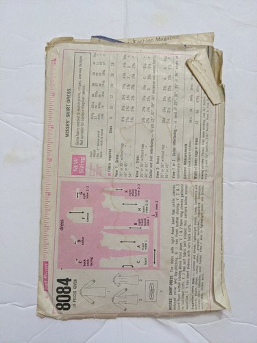 1969 Vintage Simplicity Pattern 8084 Misses Shirt Dress Size 16 Bust 38 Cut Ebay
